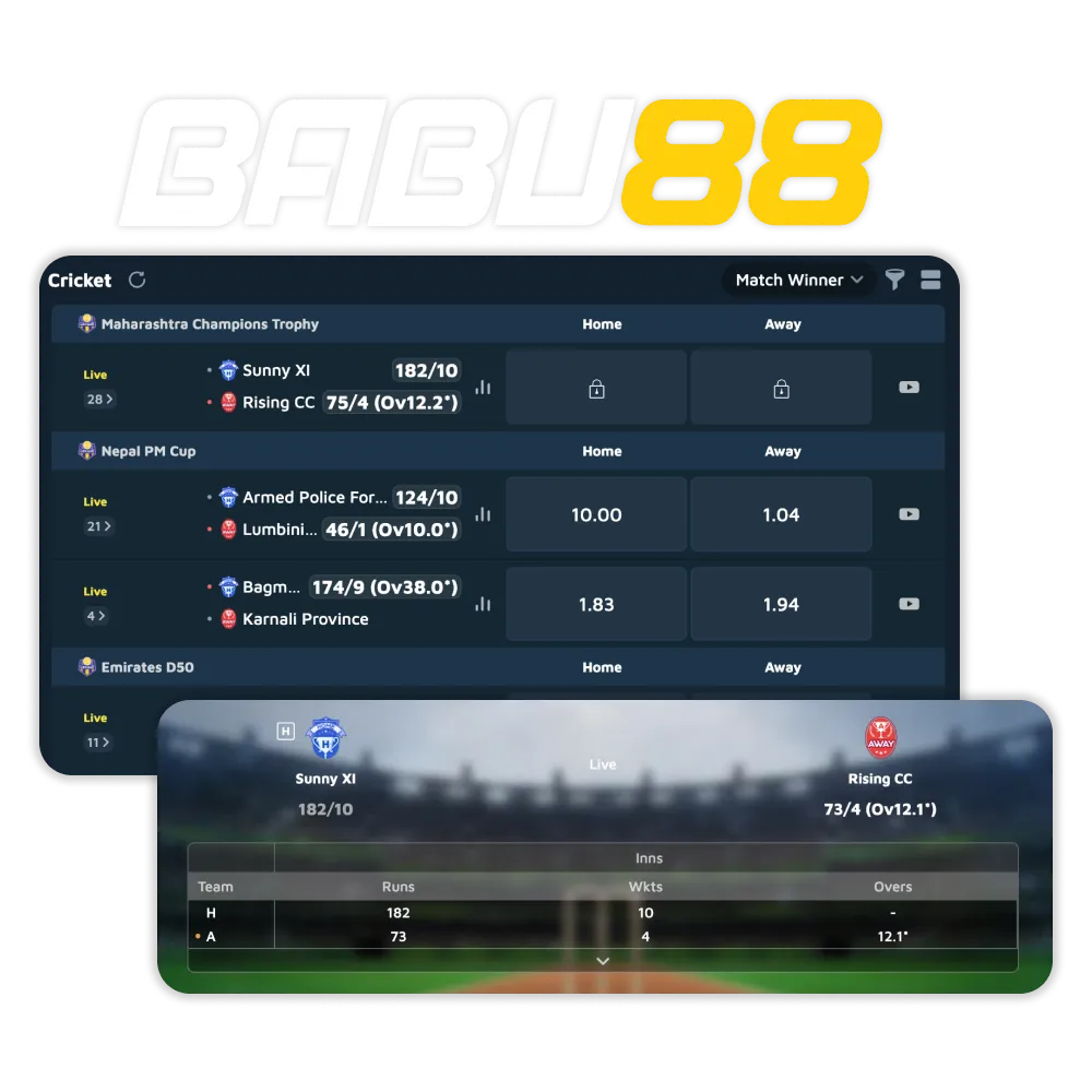 Babu88 covers the biggest cricket events worldwide, giving you access to international tournaments, regional leagues, and local competitions. Each event offers a wide range of markets, including live betting.