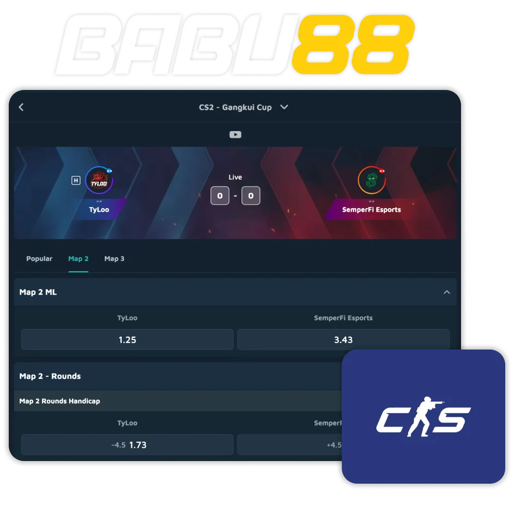 Bet on the biggest CS2 tournaments globally through the Babu88 platform.